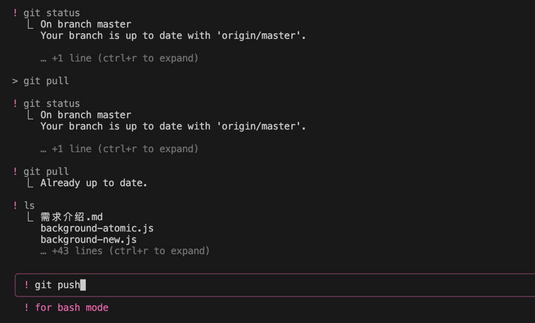 之前的分享介绍了如何使用 Claude Code 和 Git / Linux 进行交互,但是它是会消耗你的 Token 的,如果是一些简单的命令,可以直接进入 Bash 模式。